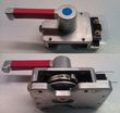 | 左:内部に組込むラックとピニオン / 右:ドアの開閉装置 |